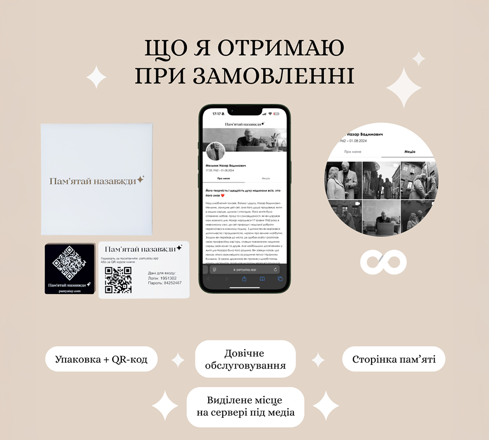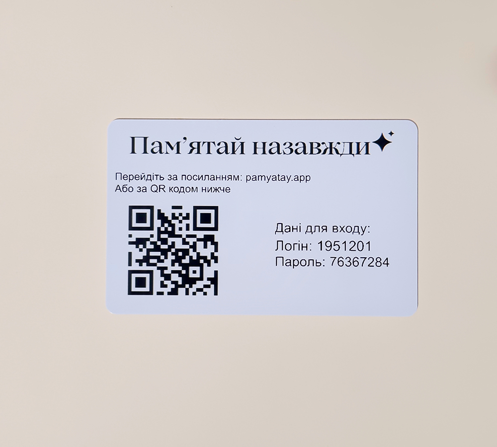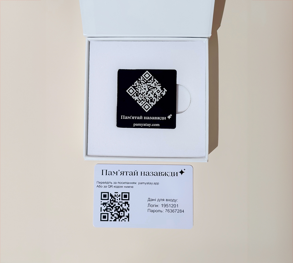 Зірка пам’яті — це QR-код для меморіальних сторінок з біографіями, фото, відео та спогадами. Ідеально для надгробків та урн.